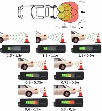 Датчики передают информацию о расстоянии до препятствия на бипер, с тремя различными звуковыми сигналами, и световую шкалу с 7 градациями расстояния чтобы водитель всегда знал, что происходит позади его автомобиля (и впереди в варианте с 6/8 датчиками). Световые индикаторы со встроенным бипером устанавливаются в салоне автомобиля и дают водителю мгновенную информацию о расстоянии до приближающегося препятствия. В основном различие всех моделей состоит в индикаторе.